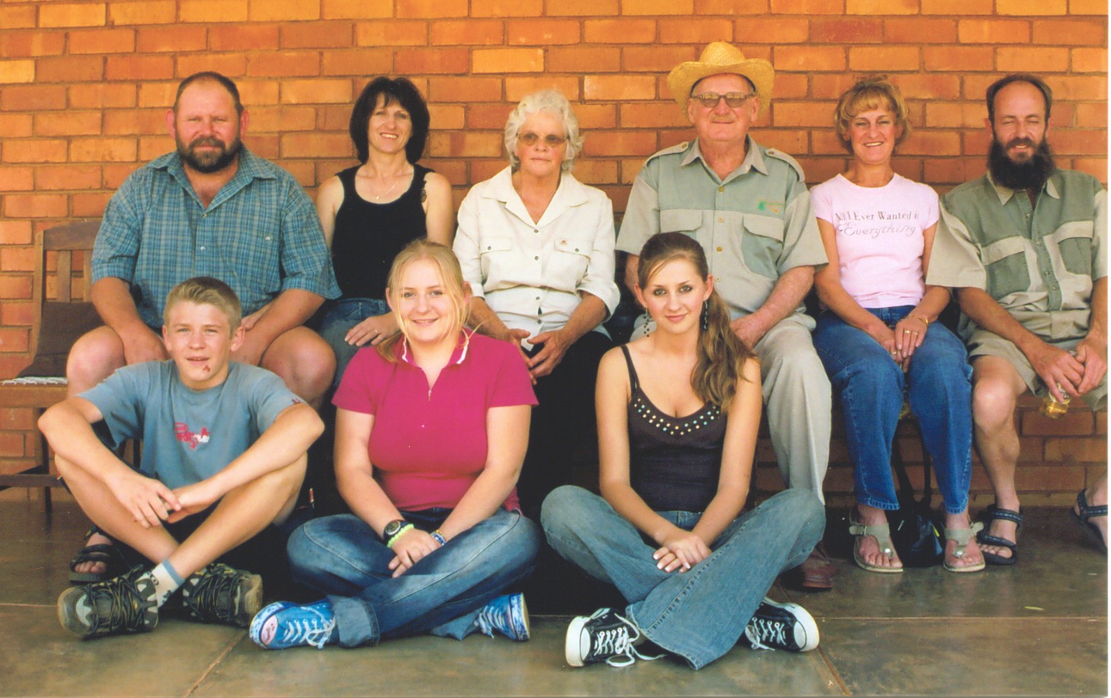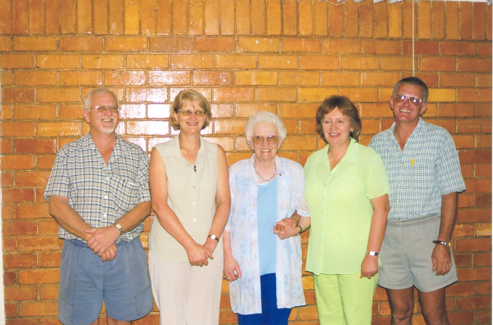 Tannie Saartjie (voorheen van Lekkerhoek), oom Lambertus, tannie Babs, Candy, Eben, Caleen en Sake Booysen |