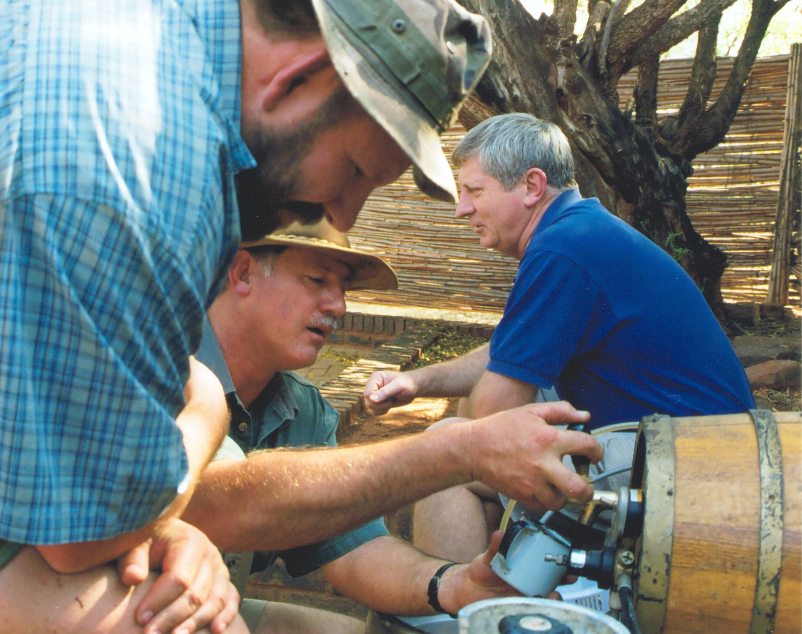 Marnus en Andre druk besig om bier te tap met Hannes van Wyk in die agtergrond |