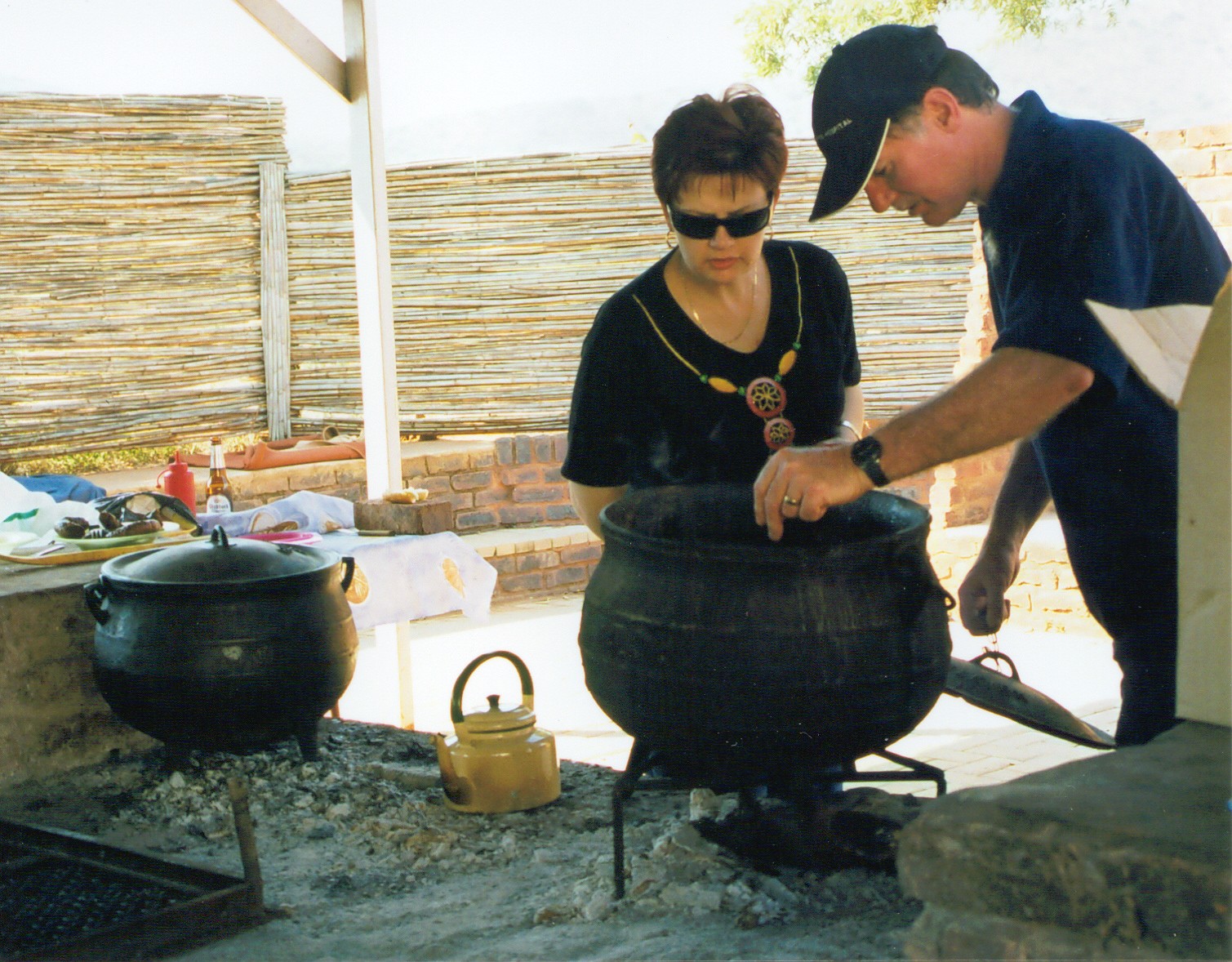 Sonja en Klaas hou 'n waakende ogie oor een van die potjiekos disse |