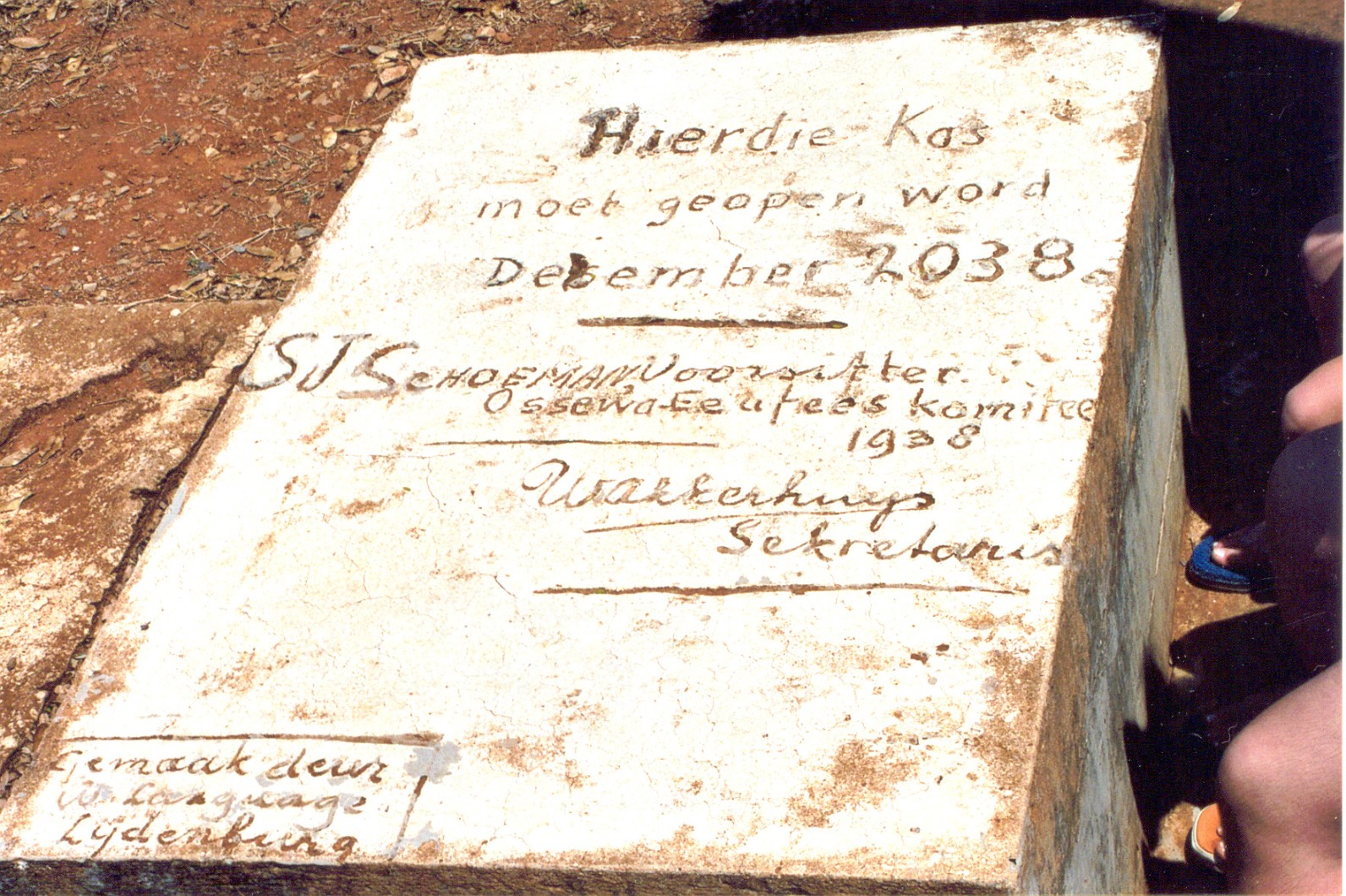 Sementkis by die Hendrik Potgieter Saal Ohrigstad. In hierdie kis is daar ook VAN DER WAL memorabilia geplaas wat eers in 2038 oopgemaak kan word |